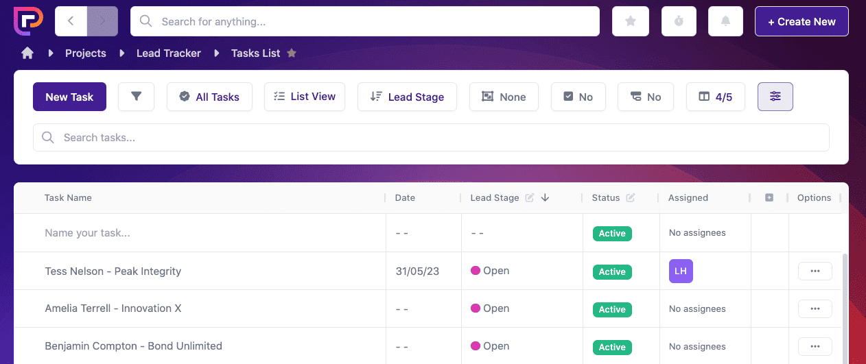 It’s easy to move your lead from one step to the next using Project.co’s lead tracking template. Using the kanban view all you need to do is simply drag and drop: