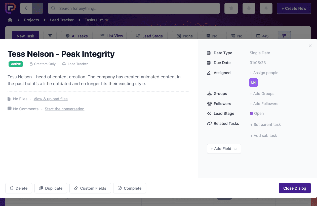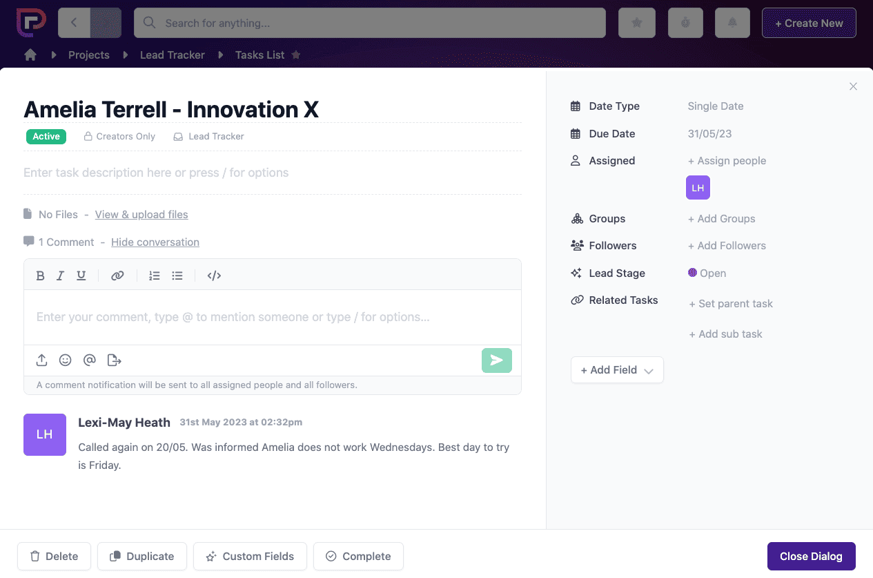 You can also close the task so that it doesn’t show up on active task lists. This keeps your list of leads neat and tidy.