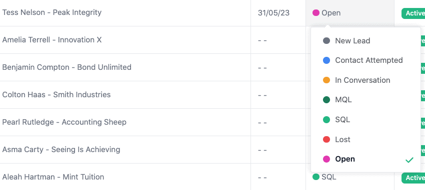 By marking your leads as “Open” you’ll be able to keep track of who you need to contact next.