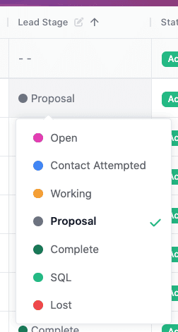 When you’ve sent a proposal to your lead and are waiting to ‘seal the deal’, move them to the “Proposal” step.