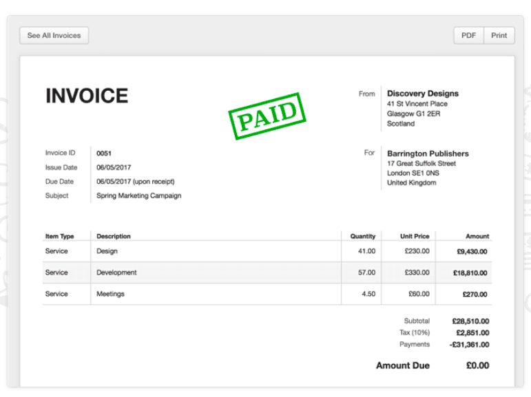 And you can also bill directly within Harvest, sending invoices to your clients in just a couple of clicks: