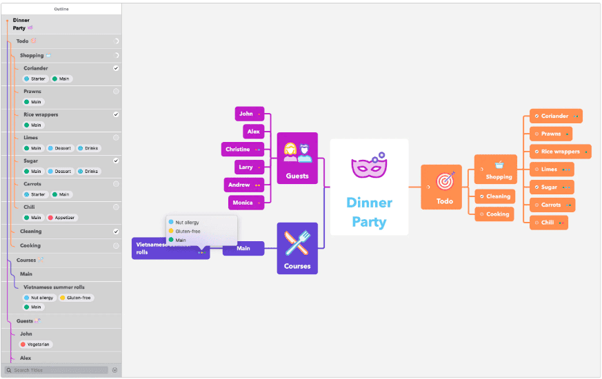 You can also transform your nodes into tasks that you can check off when complete, helping you to keep track of your progress.