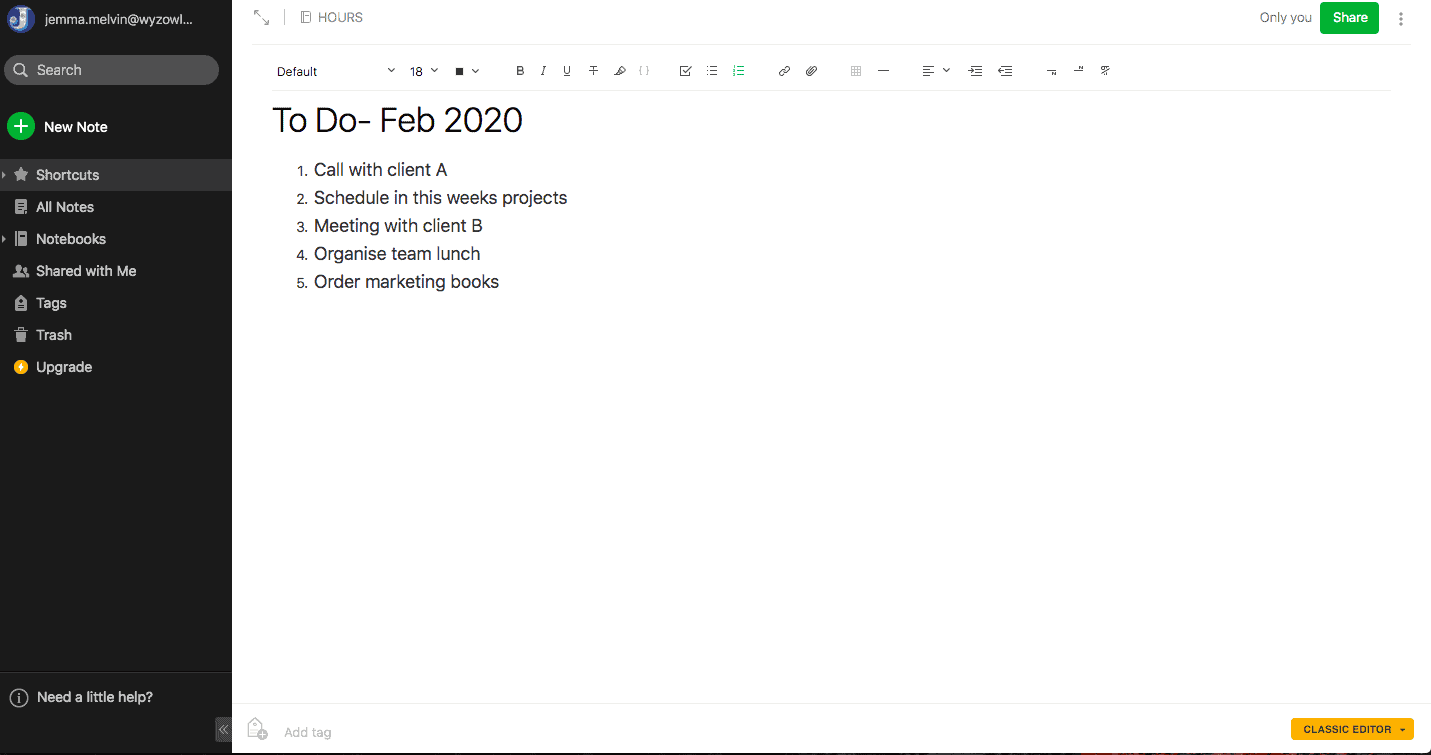 You can use Evernote to improve your time management by creating to-do lists or shareable meeting notes and agendas.