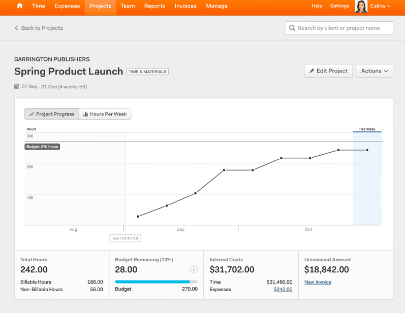 And a time tracking feature that allows you to see which projects are most profitable and what areas you need to improve in when it comes to time management.