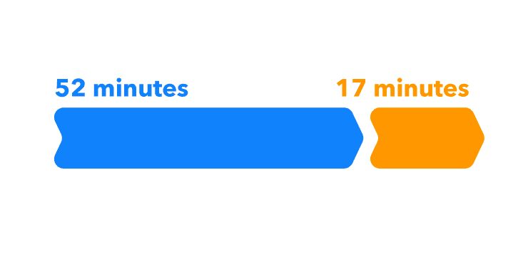 On average, the workers with the highest productivity worked for 52 minutes then took a 17 minute break.