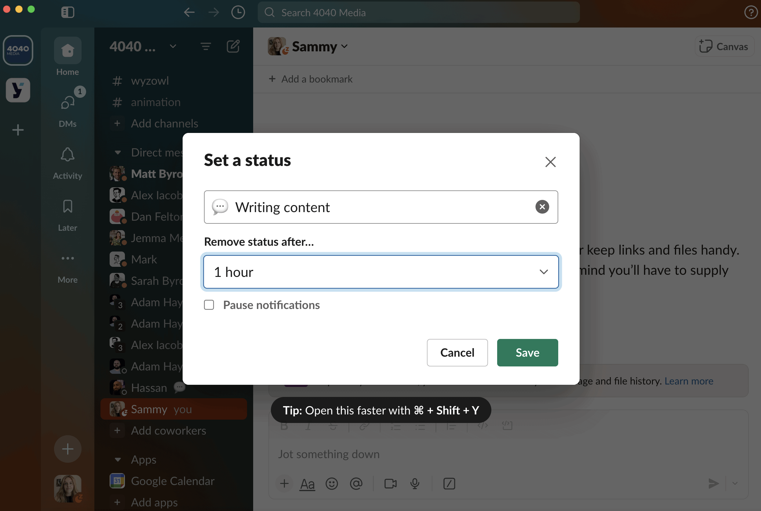 So, if you’re going to snooze your inbox, you might as well snooze all of your other communication tools, too – like Slack, for example.