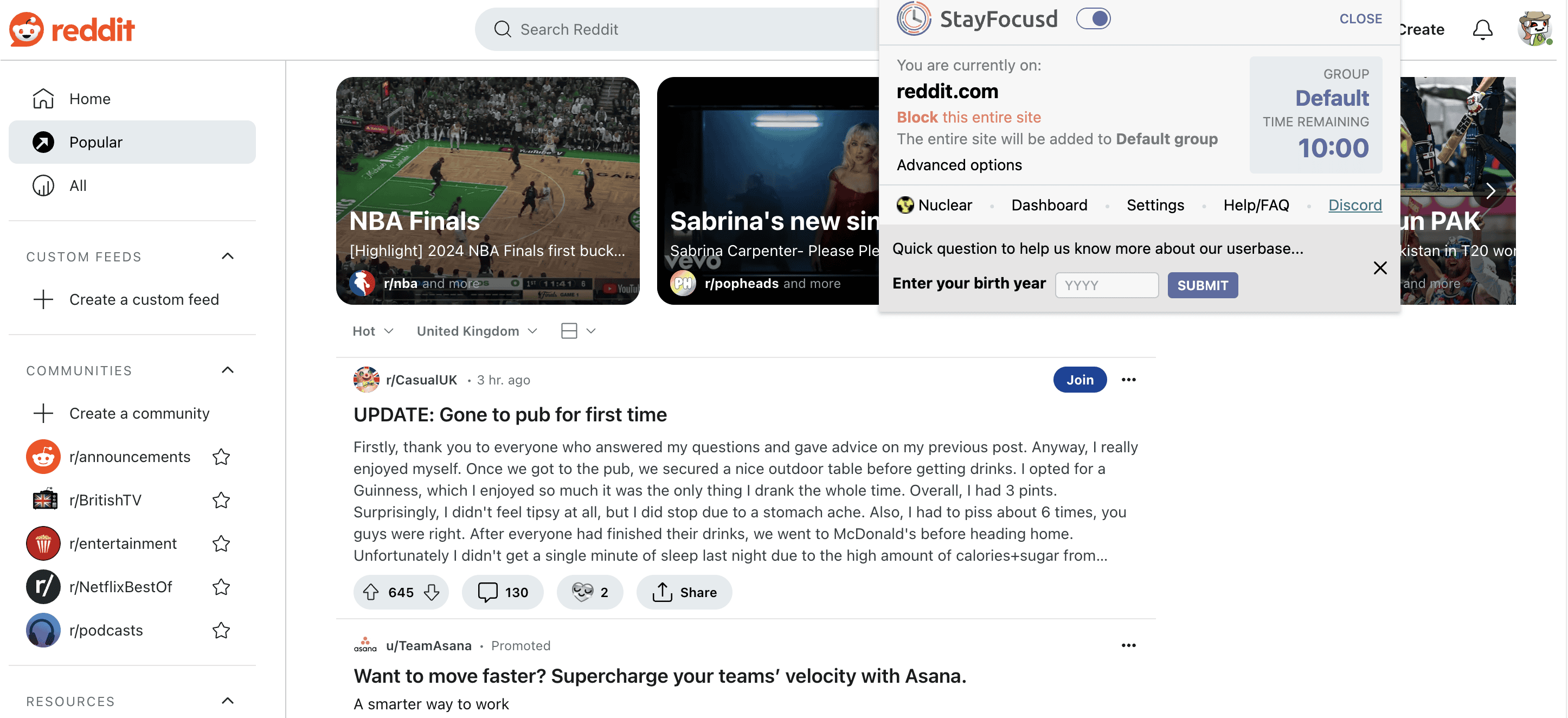 Another – perhaps stronger – way to eliminate these distractions is to block certain apps and websites on your computer. For example, if you check Reddit every ten minutes then you can temporarily block the site on your computer to avoid the temptation.