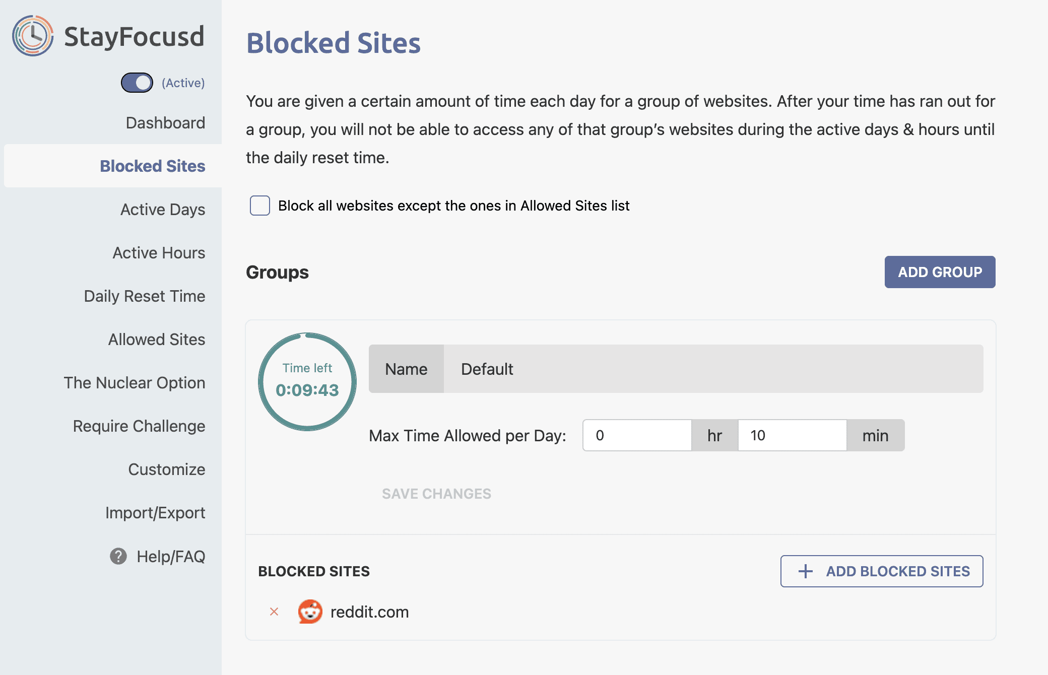 This is a great way to manage your time on social media and boost your productivity. It’s easy to unblock your sites later by heading to the Settings tab:
