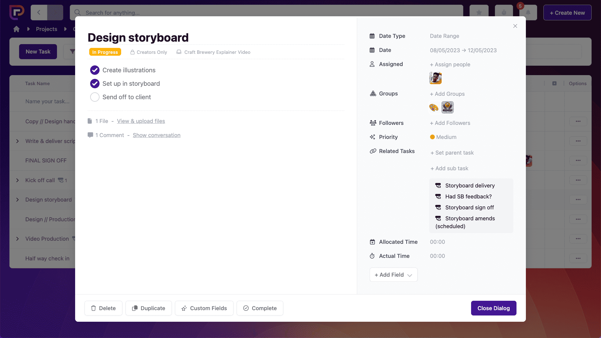 Tasks can be assigned to team members, departments, and also dates to ensure your project stays on track.