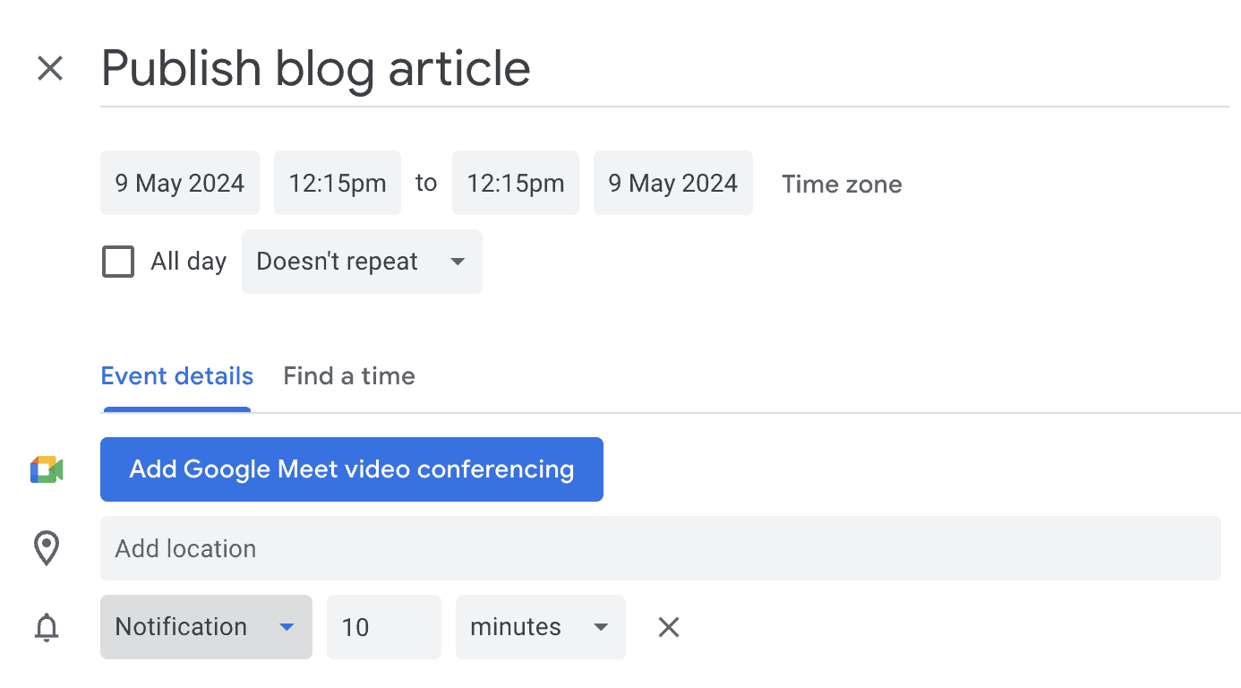 It’s easy to set up reminders using Google Calendar. All you need to do is open the app and enter the details of the task you want to be reminded about, including the time and date that it is due: