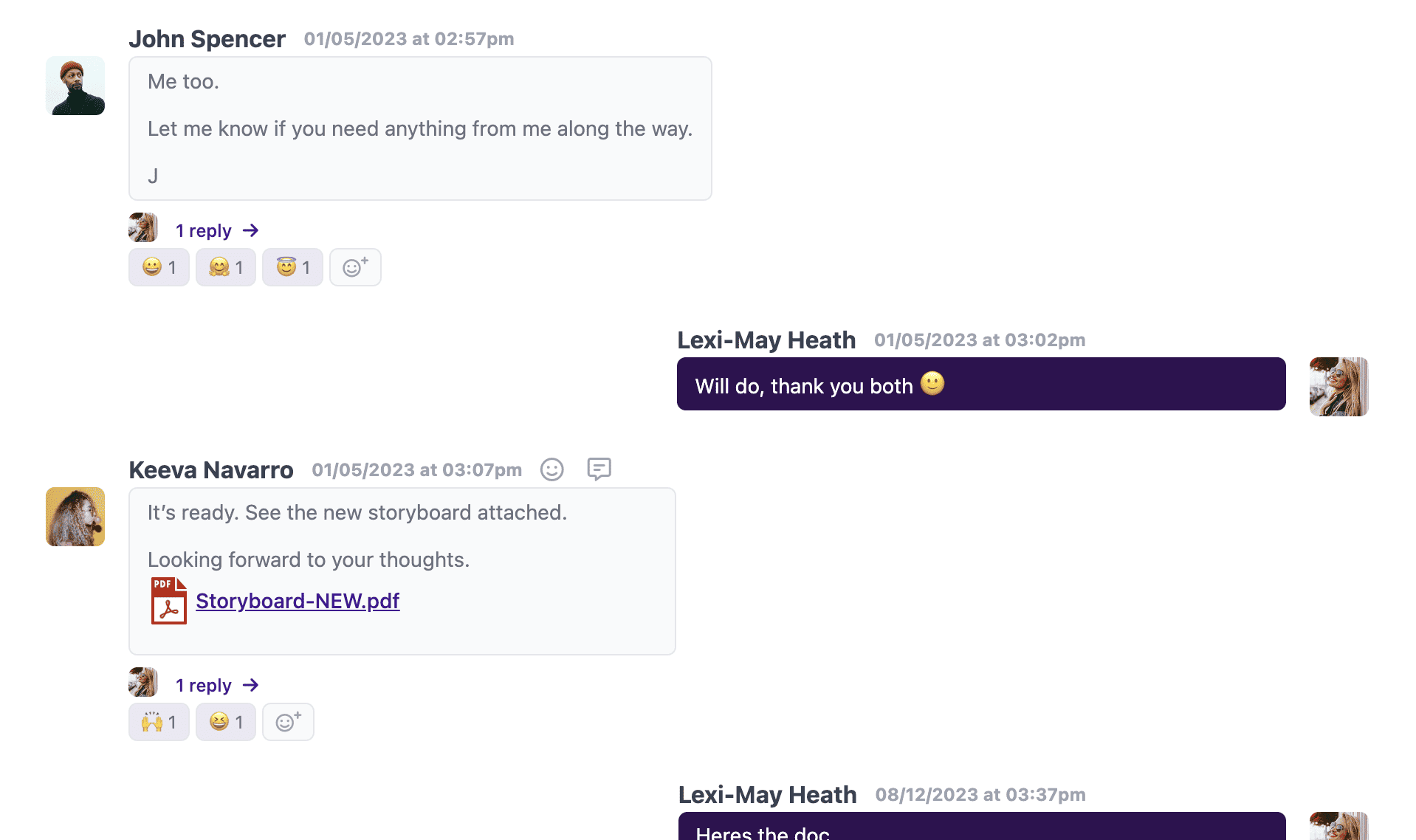 On a creative project, communication is key. Our discussions tool is perfect for keeping all project communication in one easily searchable place. Every communication is date and time-stamped so if you need to find a previous message, you can – no more frantic digging through inboxes!