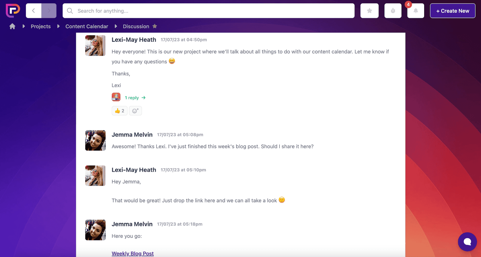 So, to manage multiple projects successfully, you need to ensure that communication is clear. One way to maintain a consistent level of communicative transparency is to keep all discussions in one centralised place.