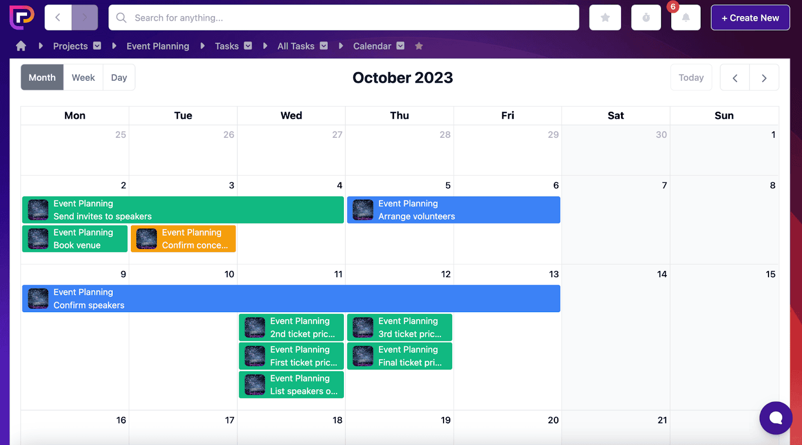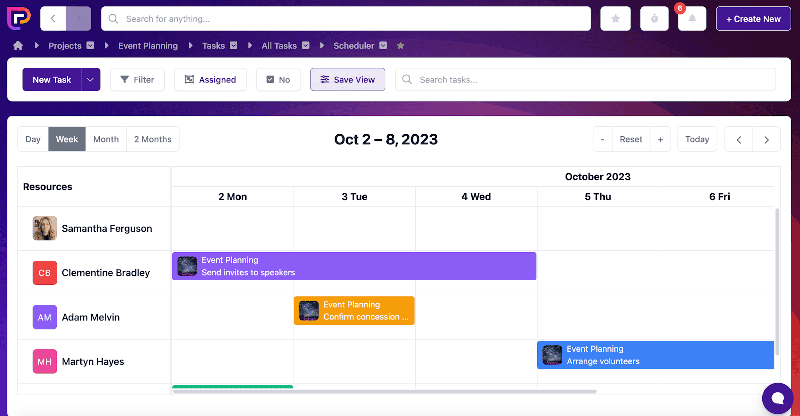 Using a project management tool like Project.co makes it easy to delegate tasks. The calendar and scheduler views allow you to take a look at everyone’s workload:
