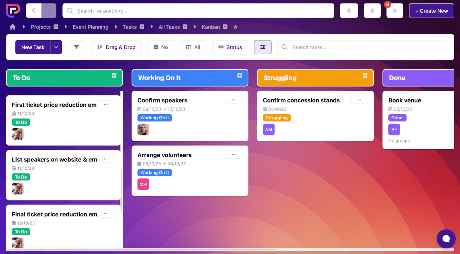 You can view tasks in a number of different ways (such as calendar, scheduler, and kanban) to help you understand if – and where – any bottlenecks are forming.