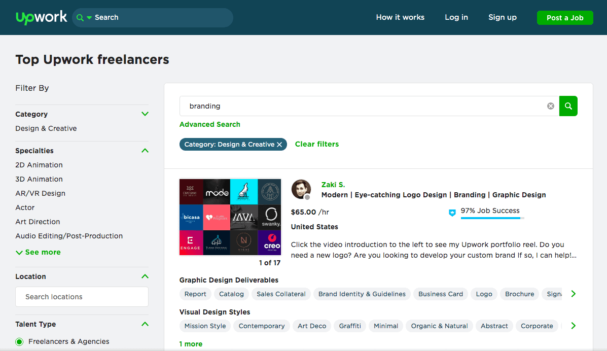 If you’re on a tight budget, you could search for a freelancer on a site like Fiverr or Upwork. Freelancing platforms like these have lots of professional designers listed that could create some initial concepts for you at a competitive rate.