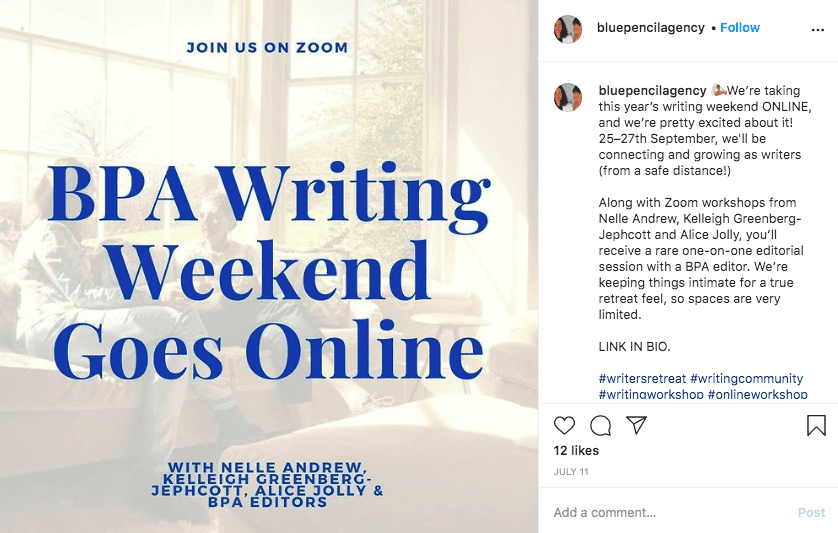 Here’s an example from the Blue Pencil Agency: