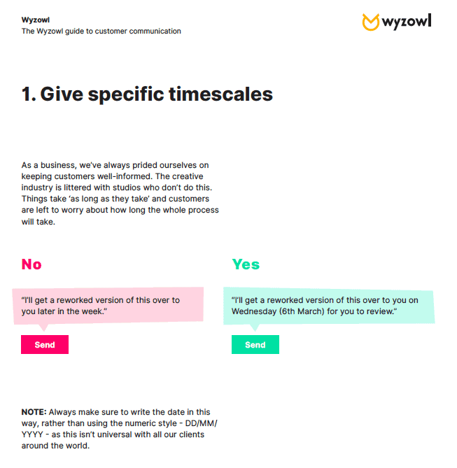 Communication between teams can easily be improved by creating a set of guidelines. This way, you can create a standardised way of communicating with one another – covering everything from expectations for response times, right down to agreed definitions for commonly-used terms in your workplace.
