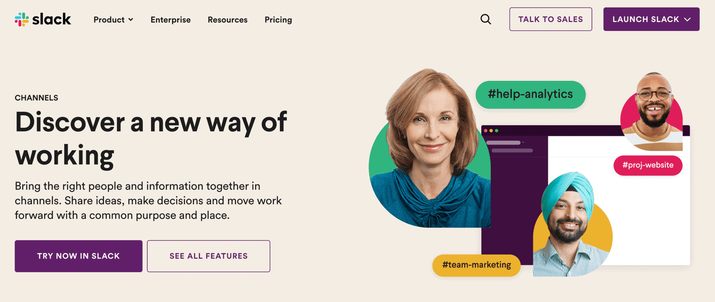 Your first port of call should be to use your company’s productivity tool of choice to reach out to colleagues of interest. Slack is a productivity tool and messaging app that enables remote teams to work more closely. You can message anyone inside or outside your organisation and collaborate just as you would in person. People can work in dedicated spaces, called channels, which bring all the right people and information together.